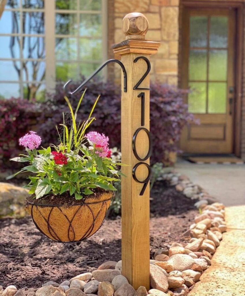 To finish it off, I simply lined up the house numbers on the front of the post and attached them using the screws that came in the package. That’s it! A quick and easy step that makes a big impact. Your flower post is officially ready to show off!