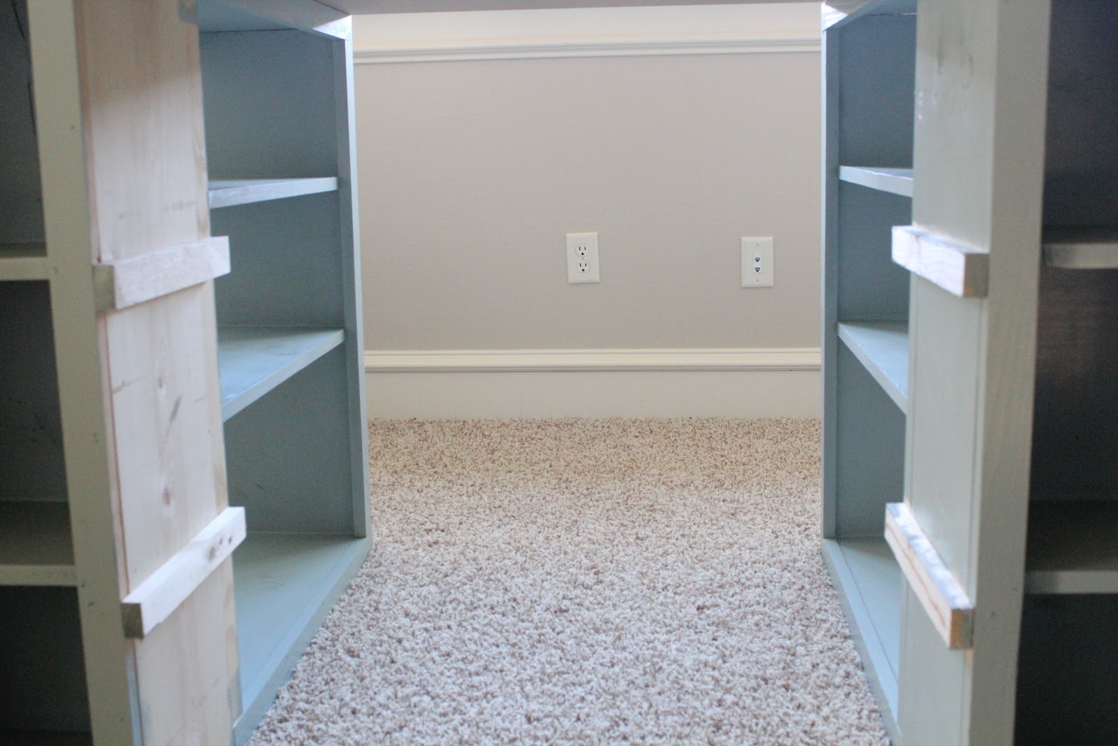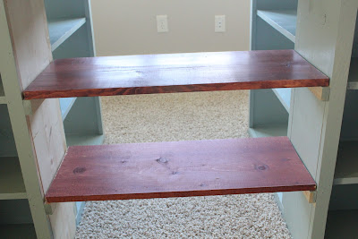 Then I added my shelves. I had some scrap wood for these and did not bother painting it because nobody but me will see it… Whoop!