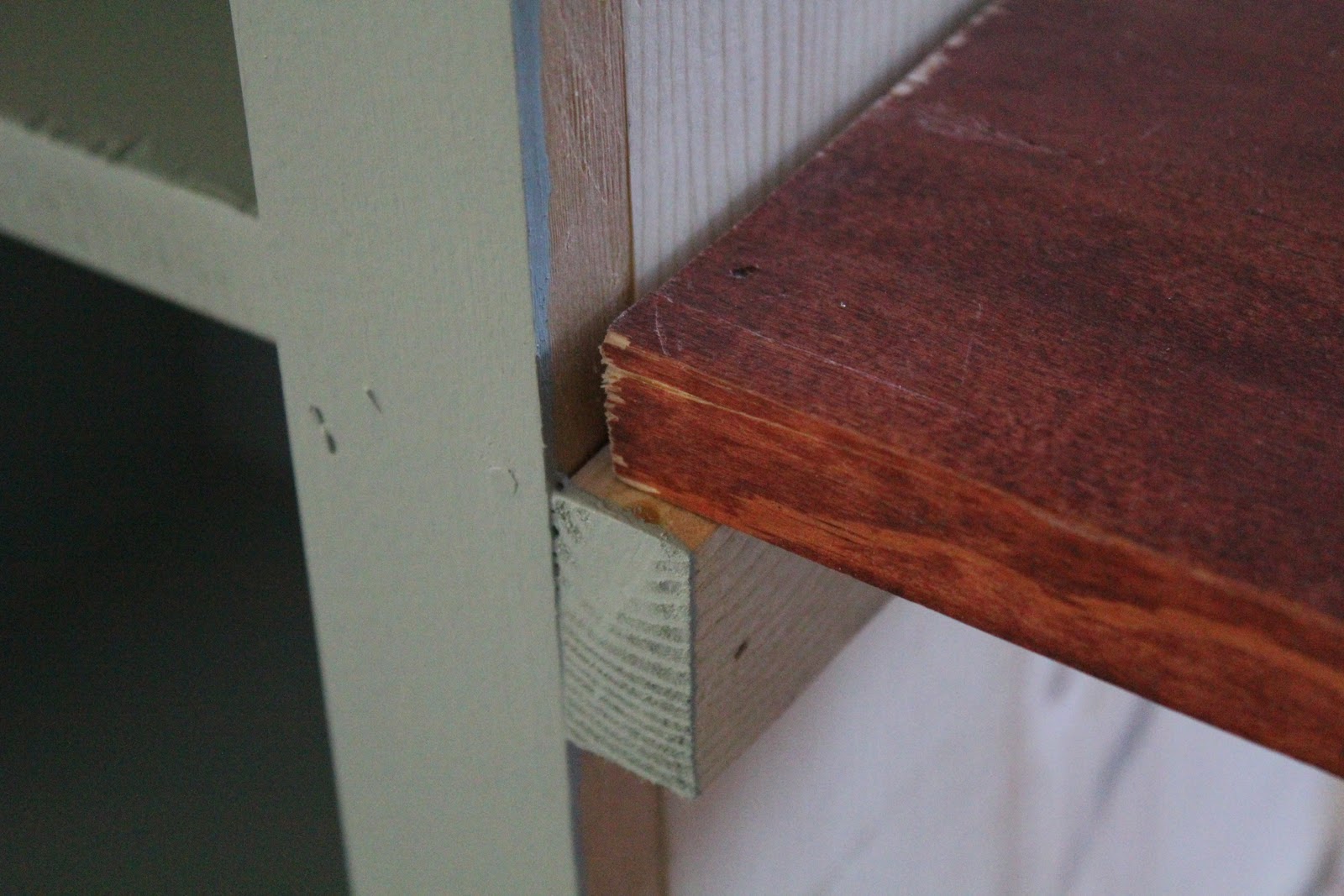 When I attached my shelves I placed them 1/4″ back from the front of the table. I did this for my next step.
