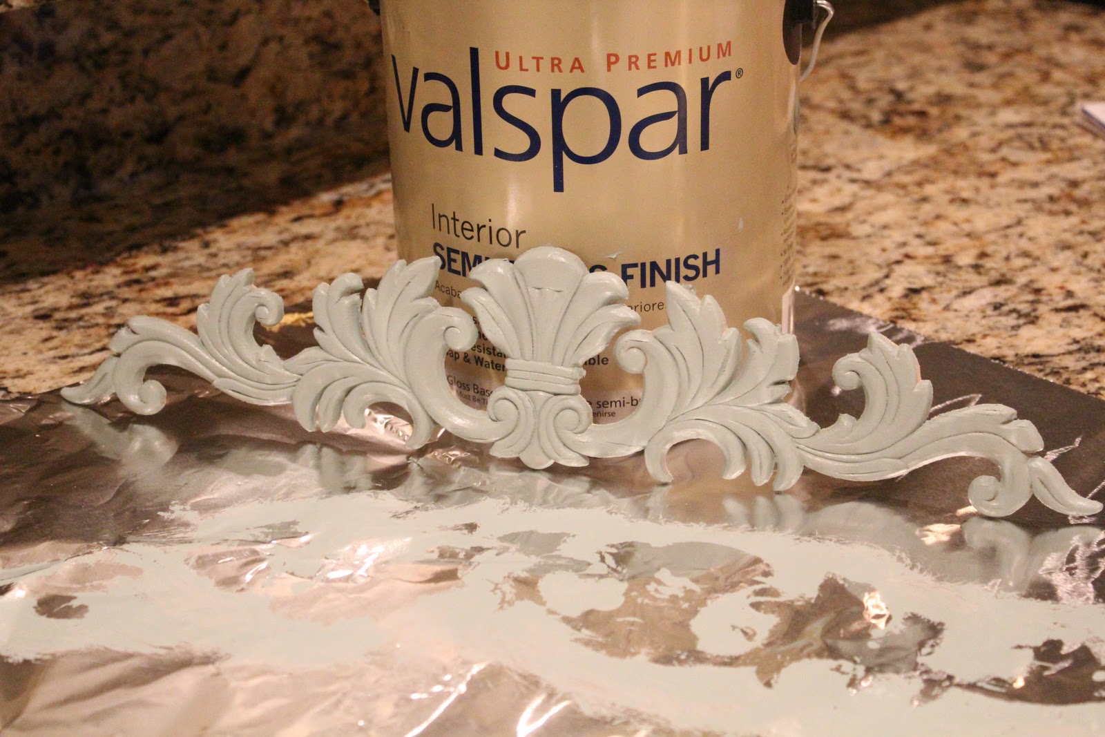 I bought a $7 wood scroll from Lowe’s and painted it.