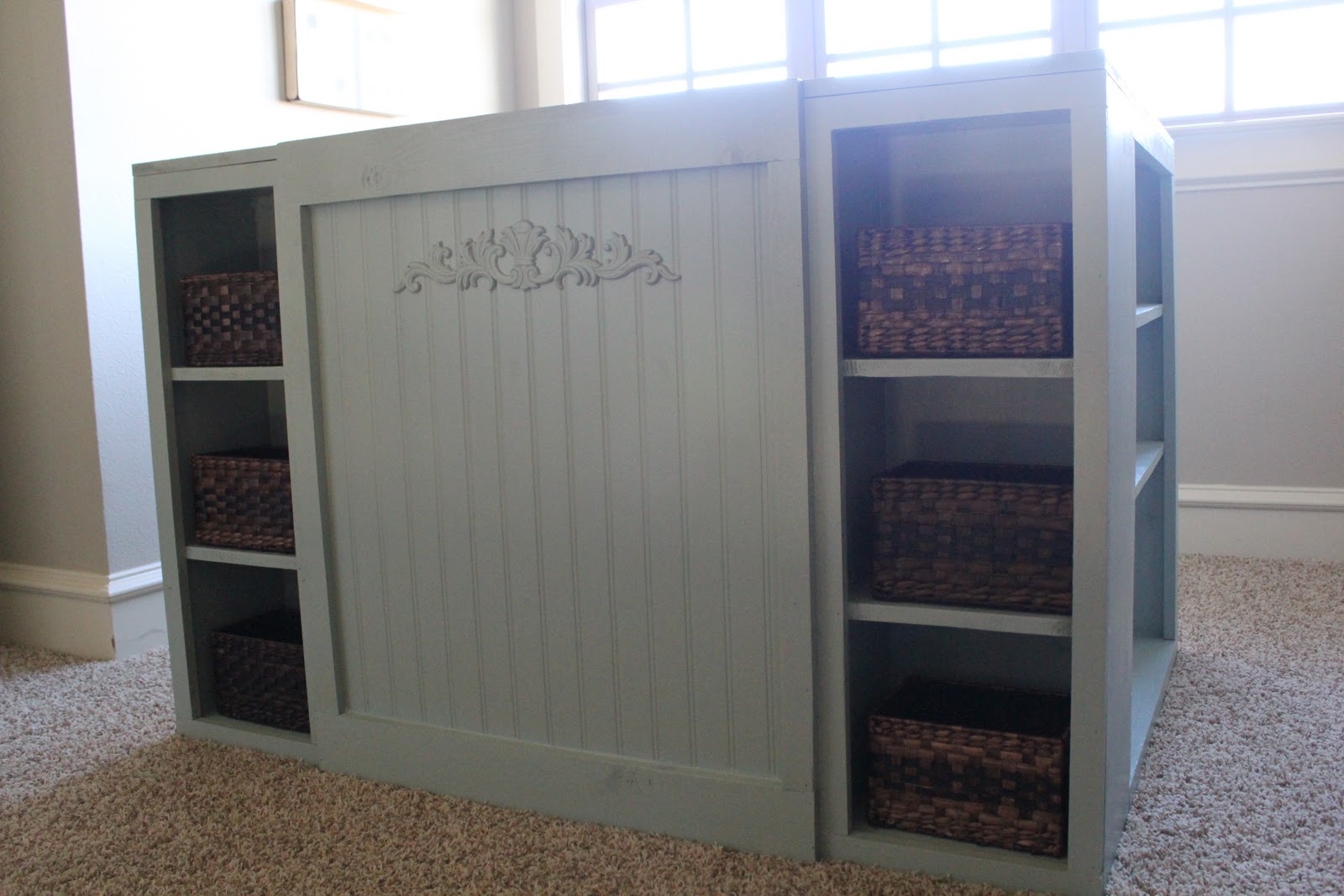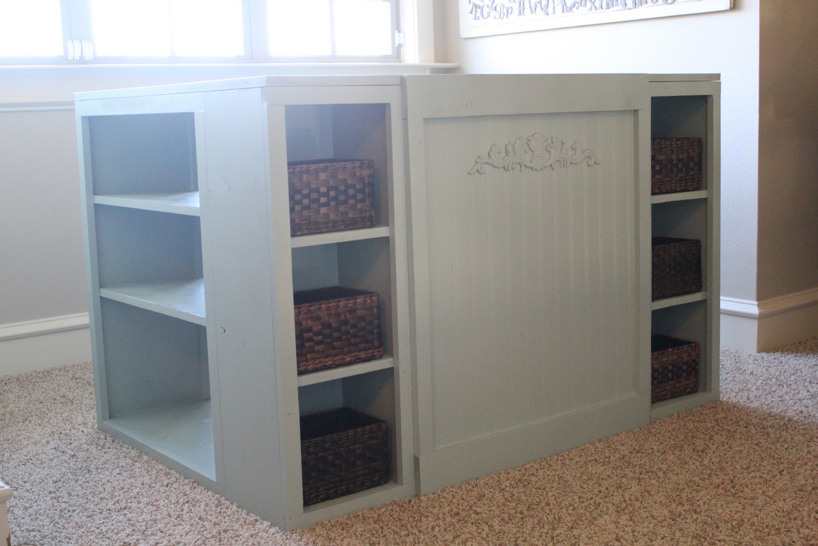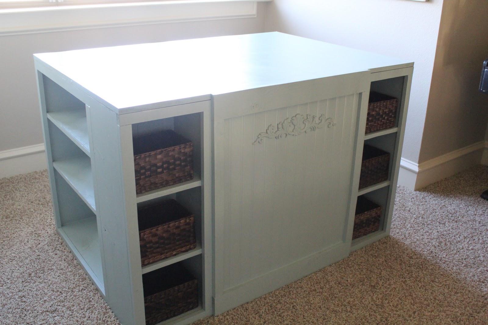 I love it!! I made my bottom side shelves just a bit taller than the plans to fit both my sewing machines. It will be so nice to finally get my stuff out of my kitchen, dining room, bedroom and closet 🙂