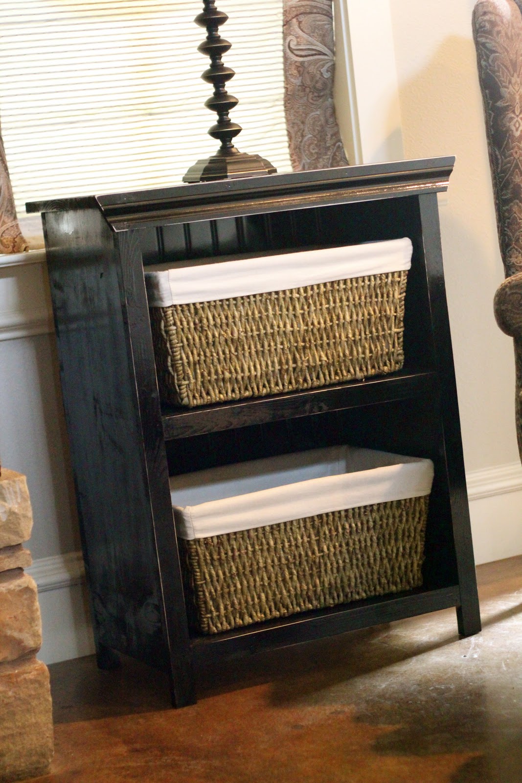 Your table looks so good! Baskets fit perfectly! I'm going to have to check out those furniture plans… Thanks for sharing!