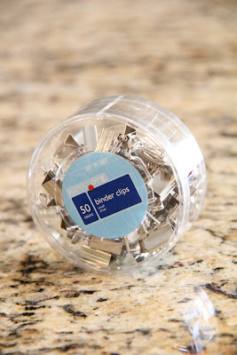 I found these binder clips at Target for $2. I knew I could use them for lots of things so I bought the 50 pack.
