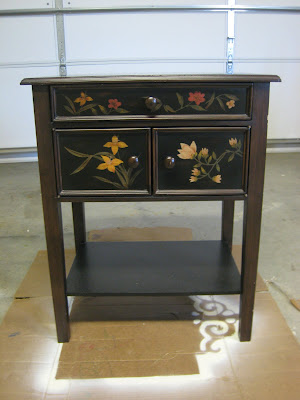 With the absence of my Christmas tree, the living room is feeling a bit bare. I actually moved a small side table into the kitchen to make room for the tree and decided I liked it better in there. Now, I am left with a blank space… darn:) Lucky for me I recently received this side table below as a freebie.