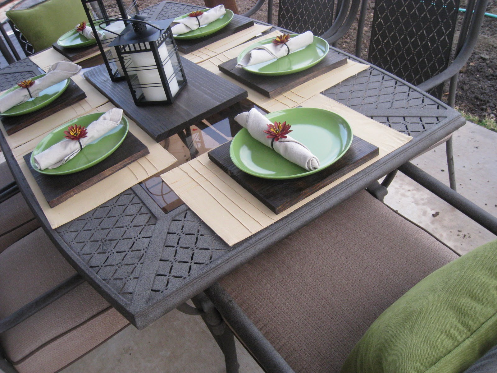 I sure do LOVE your chargers!!!! How wonderful they are, especially for outdoors! I also love your patio set! I am on the lookout for a rectangular table….I ahve a round one right now that only seats 4. Thanks for the tip! XO, Pinky