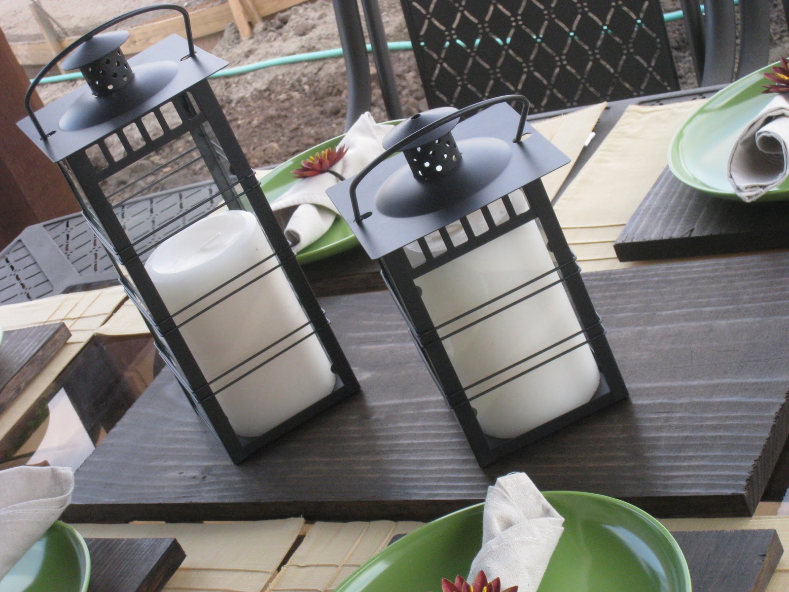 I also cut one 1 x 12 at 24″ for a centerpiece and I love how it shows off my citronella lanterns!