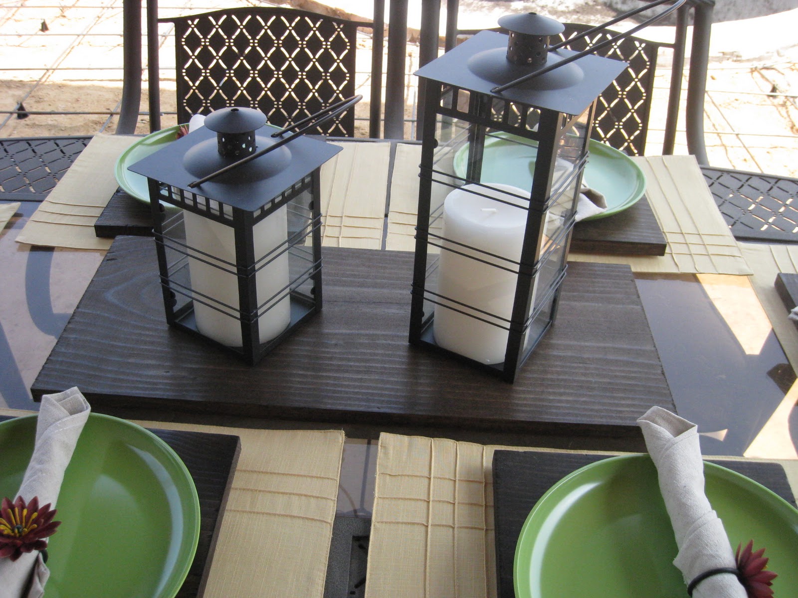 First, I am so jealous of the pool! It is going to be so beautiful. The brown and greens of the table are beautiful. What a lever idea. Those lanterns are really fun. Enjoy it when it is all done.