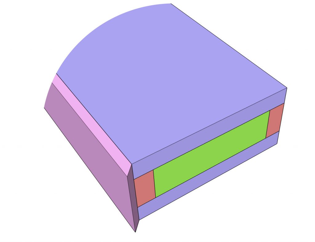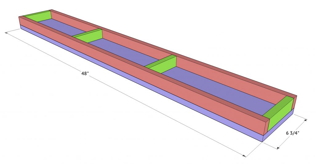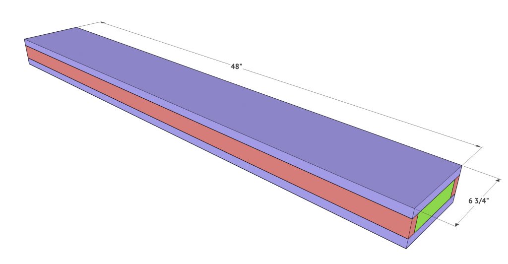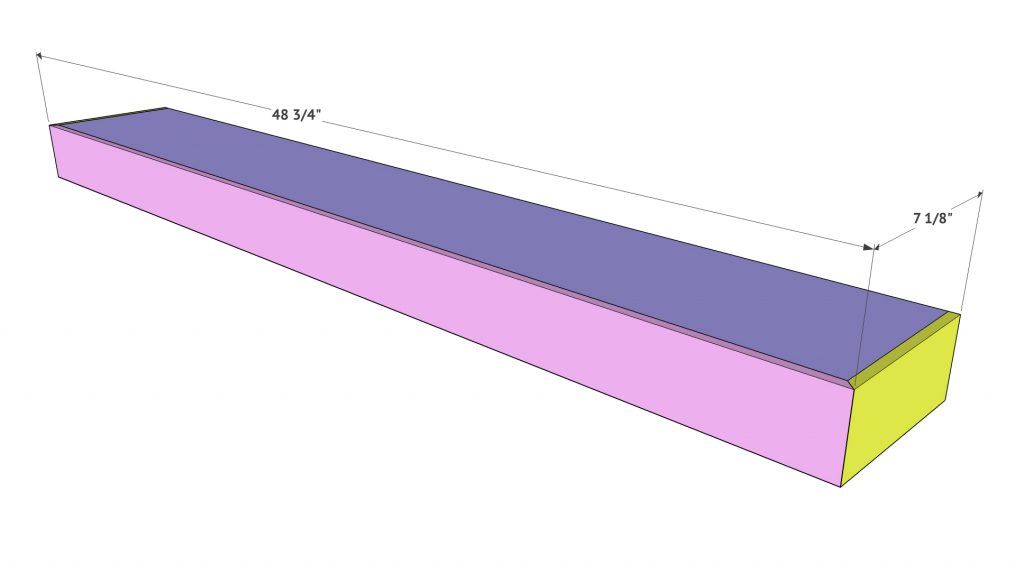 Finally, add the two side pieces. The front of these will also be cut at 45˚ to meet up with the front board, and the back of it will be flat since it will sit against the wall.