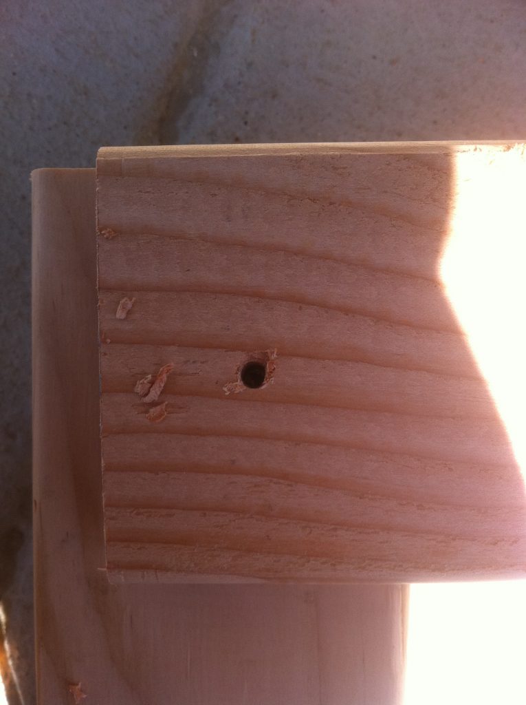 Wood putty the screw holes. I used Elmer’s Stainable Wood Filler.