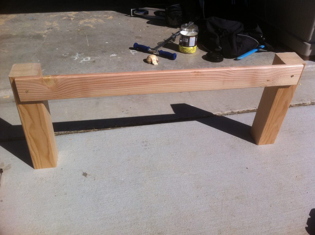 I modified Ana’s plans a bit to fit my couch. We have a sectional that is equal on both sides and if any of you have the same then you know our pain in finding a square coffee table. Of course, the plans were for a rectangle so I had to do some calculations to get a square table.