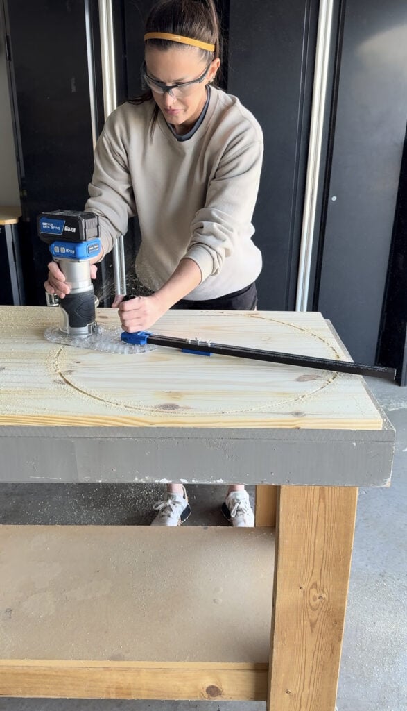 For this project, I used my Kreg 20V Ionic Drive 1/4″ Trim Router Kit paired with the Kreg Trim Router Circle Guide, and it really takes the guesswork out of cutting circles.