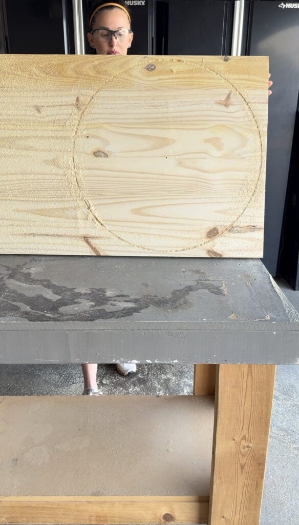 And the best part is this isn’t just for small projects. It can cut circles up to 52″, so it works for everything from a simple door hanger like this to full-size coffee tables and dining tables. It makes those bigger builds feel a lot more doable.