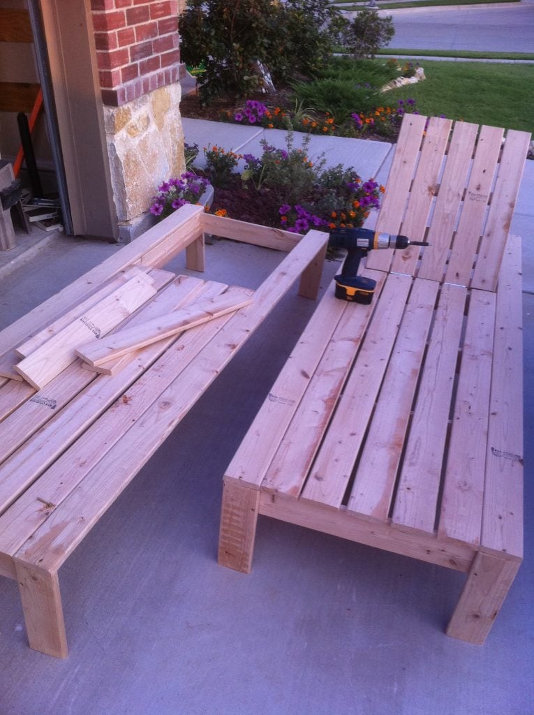 I used the base of the chaise to assemble the back by aligning each board on top of the other to ensure a good match when the back was attached.