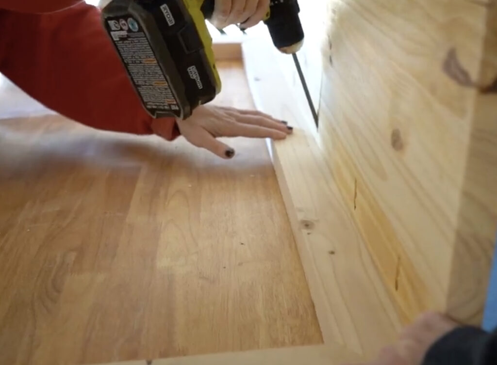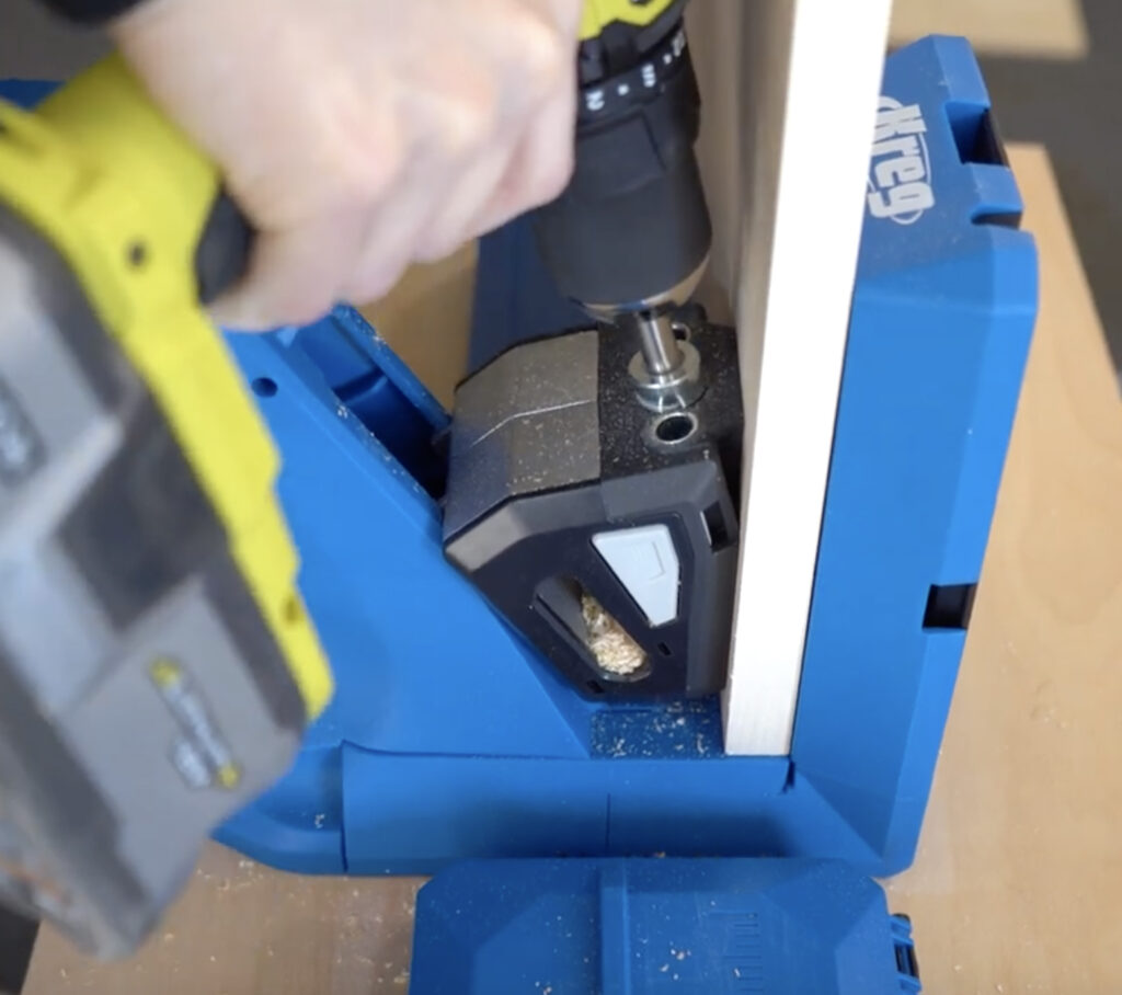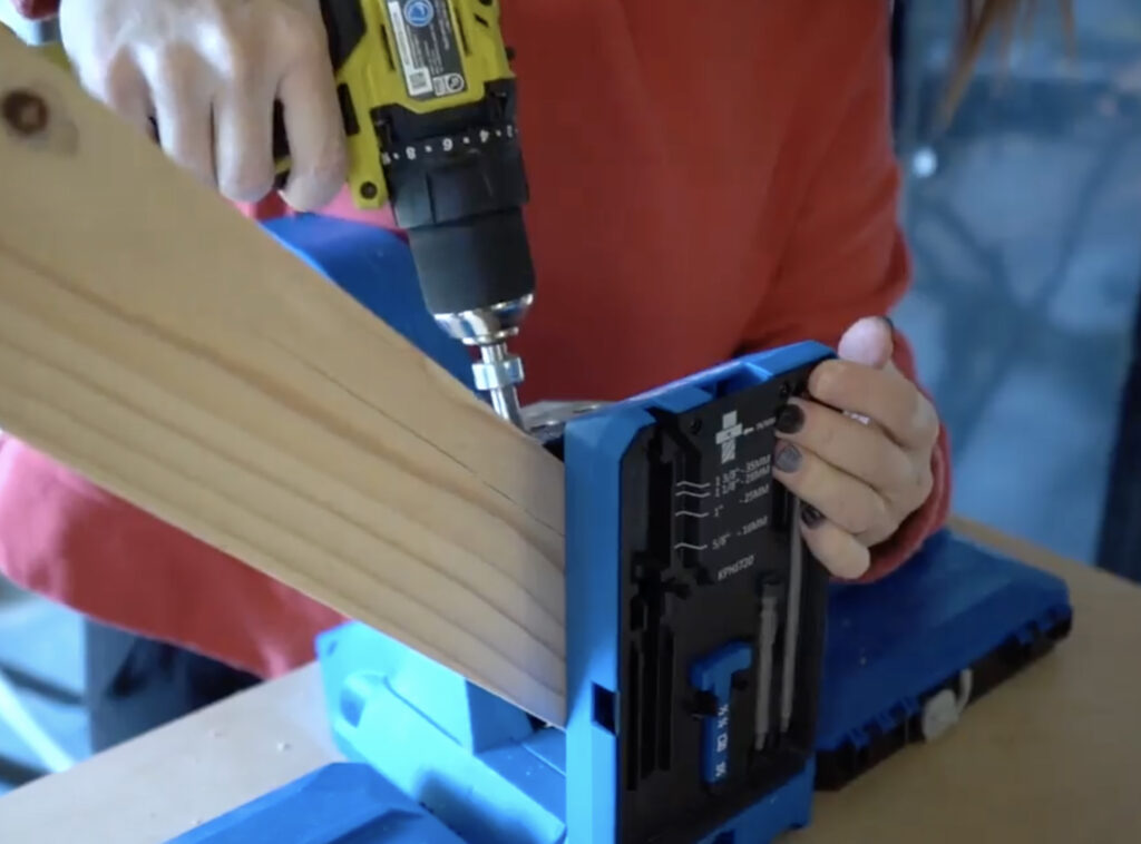 - Drill pocket holes using a Kreg Jig where the boards will join together.