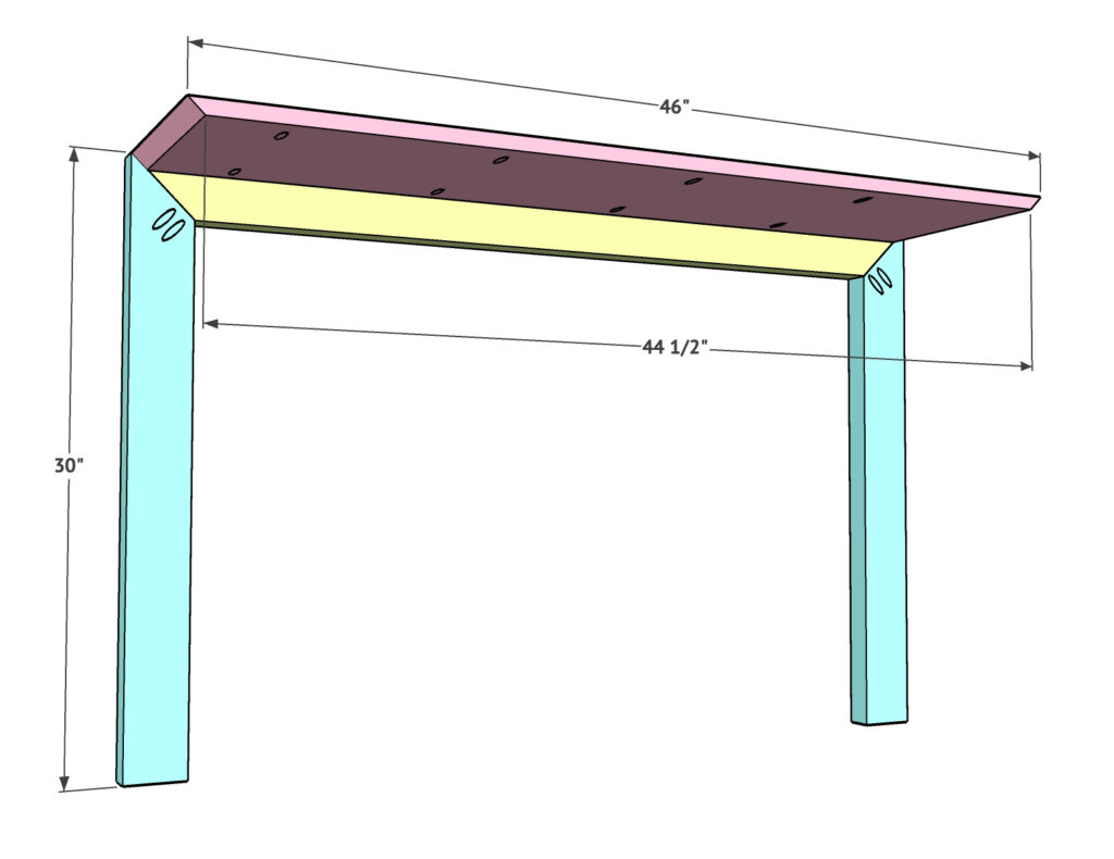 Cut your side panels at 45º on the top edge to continue the “waterfall” effect. Add 3/4” pocket holes along the long inside edges, then attach them to the console sides using glue and 1.25” pocket hole screws.