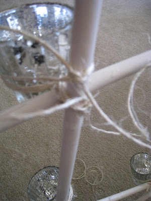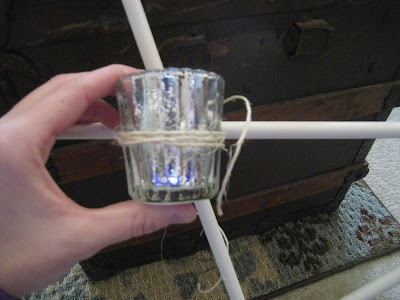 I used 1 ply jute and wrapped it 3 times around each votive hot gluing as I went.