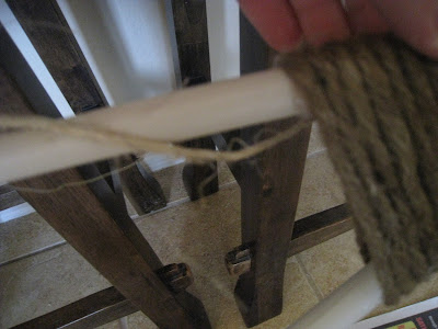 Now for the finishing touches…I used the 1 ply jute to wrap the rods. Start at one corner and hot glue the end of the jute to the back side of the corner.