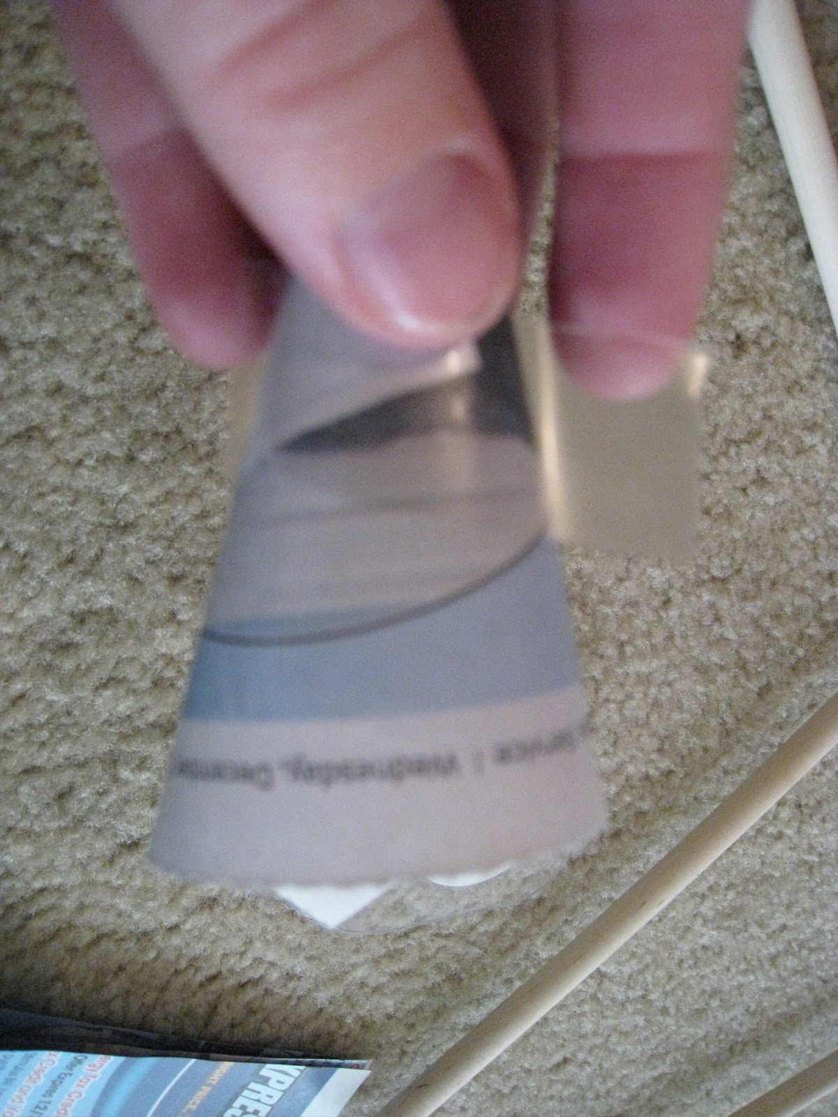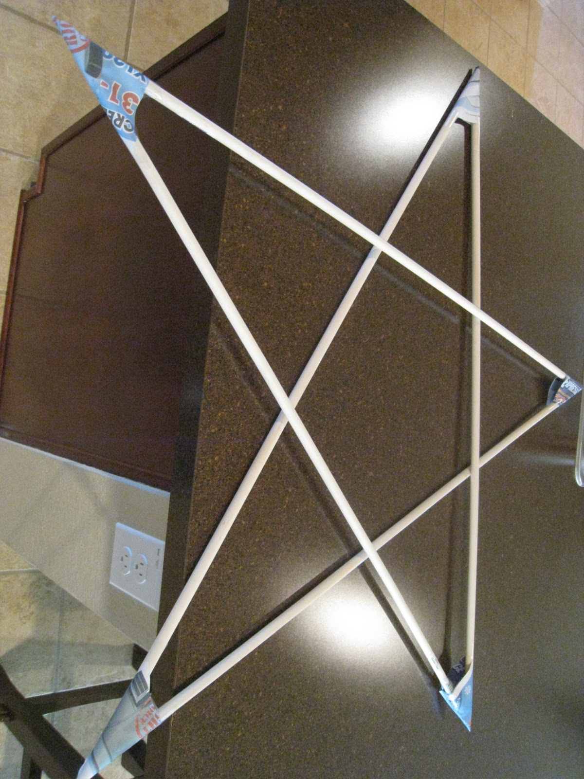 Next, cover each corner of the star with the cones using scotch tape to secure the cone to the rods.