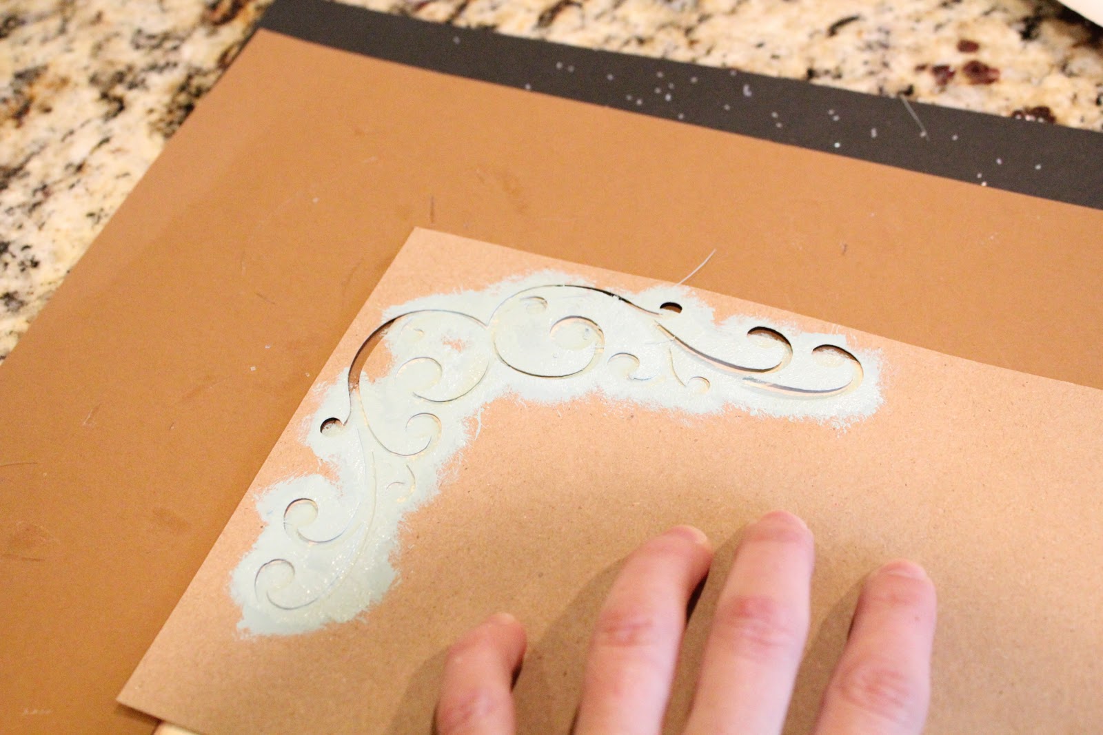 I then used some extra cardstock I had to cut a scrolly(pretty sure that is the professional term) stencil.