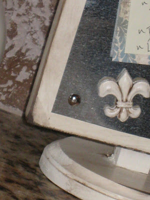 Now for my magnets… I used the same super cute Fleur-de-lis wood pieces that Ash used on a previous procect. I painted and glzed them the same and then used some Gorilla Glue to attach the magnets.