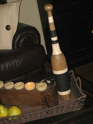 So after Ashley found her bowling pins that she transformed HERE, I knew I had to have one of my own! Luckily I did manage to run accross one at TJ Maxx just a few days later. I also found these great vintage looking balls with it. I have been told now by three different people that these pins are three different things. After I googled them a bit I decided that they best resemble an antique juggling pin… so that’s what I am going with! I loved the look of them but they did need a bit of a color change…