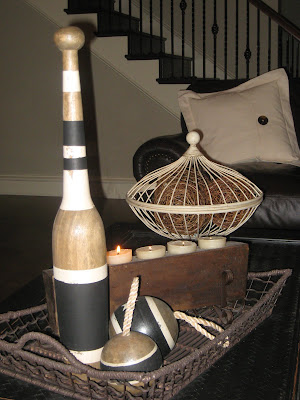So after Ashley found her bowling pins that she transformed HERE, I knew I had to have one of my own! Luckily I did manage to run accross one at TJ Maxx just a few days later. I also found these great vintage looking balls with it. I have been told now by three different people that these pins are three different things. After I googled them a bit I decided that they best resemble an antique juggling pin… so that’s what I am going with! I loved the look of them but they did need a bit of a color change…